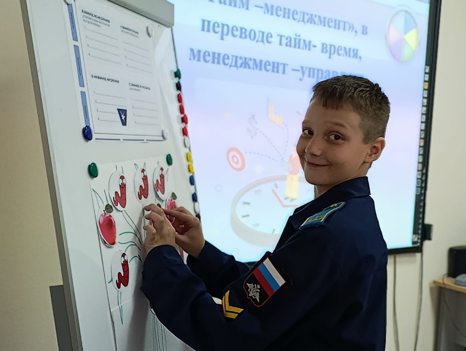 Тренинг прошел весело, динамично, подарил отличное настроение, способствовал улучшению психологического микроклимата кадетской среды. Кадеты 6 классов получили советы и приемы, узнали секреты самоорганизации своего времени. А на память кадеты получили памятку «Тайм-менеджмент для кадета».