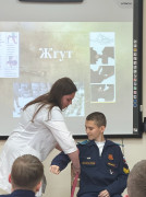 Студенты Ставропольского государственного медицинского университета под руководством педагога-психолога Ставропольского ПКУ Марины Викторовны Рязанцевой провели профориентационный практико-ориентированный семинар для кадет 7 «Д» класса под названием «Тактическая медицина как искусство».