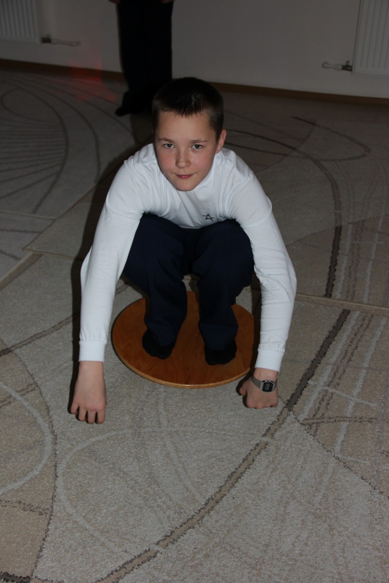 Затем, работая на балансирах на практике почувствовали, что такое устойчивость и как ее удержать, выполняя задания.