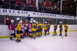 На Ледовом катке Ставропольского президентского кадетского училища состоялся хоккейный матч между командами Ставропольского ПКУ и Хоккейного клуба «Тайфун» (г. Ставрополь). Товарищеский матч был проведён в честь наступающих Нового года и Рождества. Матч проводился в игровом формате 3 периода по 20 минут по всем правилам игры хоккея с шайбой.