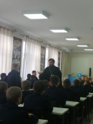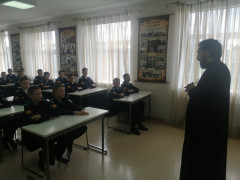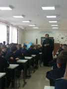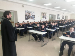 В рамках внеурочной образовательной программы «Православная культура» кадеты учебного курса 6-х классов Ставропольского президентского кадетского училища на минувшей неделе встретились с представителями духовенства Русской Православной Церкви. Обсуждаемые вопросы самые разные: вера в жизни человека; вера как доверие и верность Богу; как вера проявляется в поступках и творчестве человека; о чудесах и знамениях.