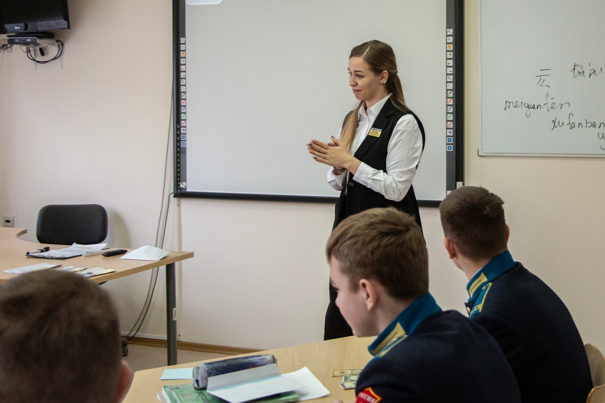 У воспитанников 9 «Б» класса Ставропольского президентского кадетского училища состоялся открытый урок китайского языка на тему «Карманные деньги». Это был урок открытия новых знаний, обретения новых навыков и умений. Провела его преподаватель китайского языка Анна Александровна Морозова. Во время урока кадеты повторили числительные и выучили лексику, связанную с деньгами, планированием бюджета и способами трат. Воспитанники рассказывали, на что они тратят свои стипендии. Также рассмотрели разные валюты (доллары и юани) и их курс к рублю.