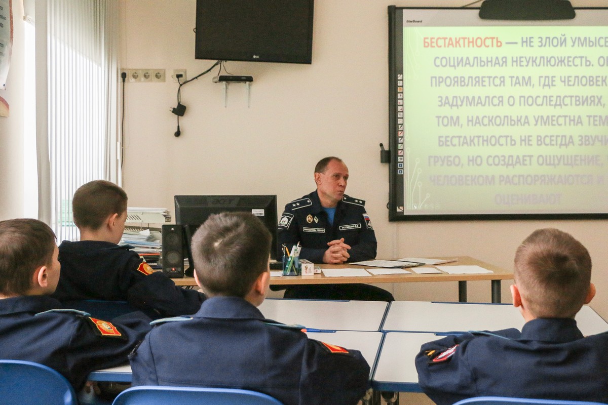 У воспитанников 6 «Г» класса Ставропольского президентского кадетского училища состоялось внеурочное открытое занятие, посвящённое культуре поведения и вежливости. «Человеческая бестактность», - так называлось мероприятие, которое провёл воспитатель класса Дмитрий Николаевич Реутинский. Главная цель занятия – способствовать формированию у обучающихся ценностно-смысловых установок, отражающих личностные качества в деятельности, развитию эмоционального интеллекта и навыков коммуникации.