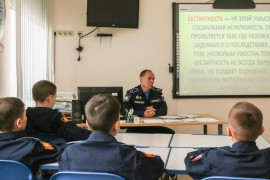 Началось мероприятие с просмотра небольшого видеофрагмента. После анализа увиденного кадеты смогли сами назвать тему занятия. Затем воспитатель и его подопечные сформулировали представление о человеческой красоте – доброте, справедливости, честности, непримиримости к бестактному поведению и неуважительному отношению к другим людям.