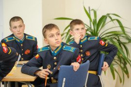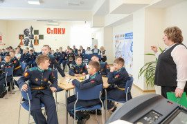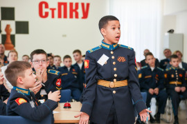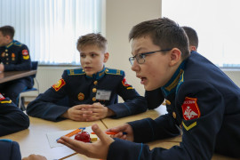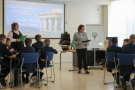Преподаватели Ирина Павловна Рогожина и Наталья Викторовна Королевская предложили ребятам проверить свои знания, отвечая на вопросы двух туров викторины. Целью игры стало формирование интереса кадет к смежным наукам.
