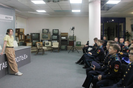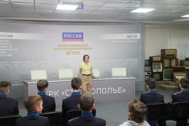 Кадет радушно встретили и с удовольствием поделились с ними профессиональными секретами. На телевидении работают не только журналисты, но и видеооператоры, режиссёры и звукорежиссёры, продюсеры, художники, гримёры, программисты, водители и ещё очень много людей разных профессий. И все в одной команде, для единой цели – качественной, оперативной и объективной информации, которую получают зрители.