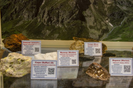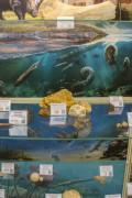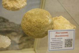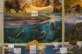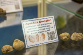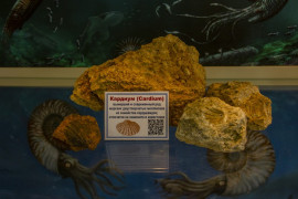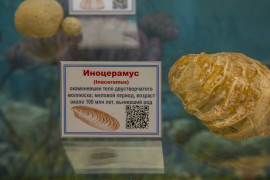 Среди экспонатов много окаменелостей морских организмов палеозойской и мезозойской геологических эр. Например, иноцерамус – окаменевшее тело двустворчатого моллюска, возраст которого около 100 млн лет; ауцеллы – окаменевшие тела двустворчатых моллюсков, возрастом 140 млн лет.