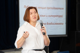 В своей публичной лекции Дарья Владиславовна говорила о прецедентных текстах, которые являются универсальным средством хранения и передачи культурного кода нации. С точки зрения прецедентности были рассмотрены не только произведения русской классической литературы, но и визитные карточки преподавателей СПКУ, которые были представлены в день открытия конкурса профессионального мастерства «Педагог года СПКУ – 2022».