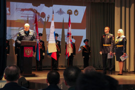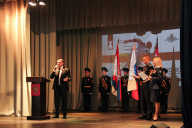 После внесения под марш оркестра СПКУ государственного флага Российской Федерации, флага Министерства обороны и Знамя училища, с приветственным словом к участникам и гостям Первенства обратился начальник Ставропольского президентского кадетского училища Преснухин Вячеслав Валерьевич: