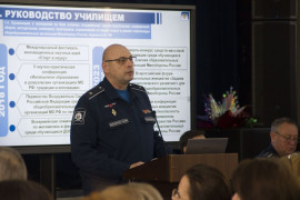 Начальник училища Вячеслав Валерьевич Преснухин обратился ко всем педагогам с приветственным словом и выступил с основным докладом «Результативность работы педагогического коллектива в 1-м полугодии 2022-2023 учебного года в контексте обеспечения рейтинговых показателей довузовского образовательного учреждения».