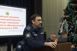 Затем заместитель начальника училища по учебной работе Сергей Владимирович Степанов выступил с докладом «Реализация программ внеурочной деятельности как ресурс повышения эффективности образовательной деятельности в СПКУ».