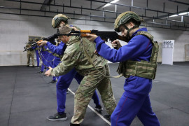 Помимо боевой экипировки в виде бронежилетов и баллистических шлемов во время тренировки инструкторами использовались холостые выстрелы, которые имитировали стрелковый бой. Благодаря этому, воспитанники смогли себя психологически подготовить к слаженной работе с оружием.