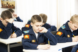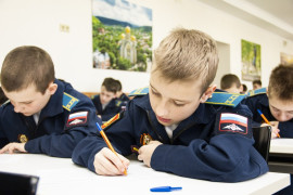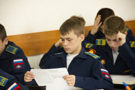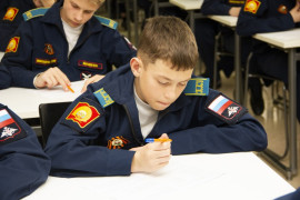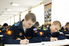 Во время внешнего тестирования воспитанники учебных курсов 5-х классов писали проверочные работы по математике, 6-х классов – по русскому языку. Кадеты учебного курса 7-х классов выполняли контрольные работы по обществознанию и физике.