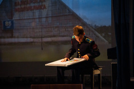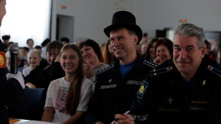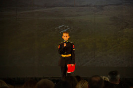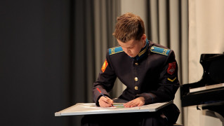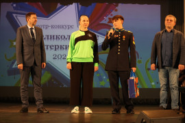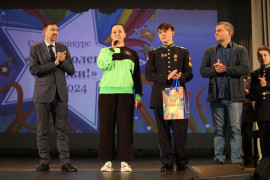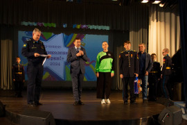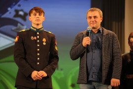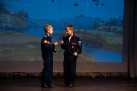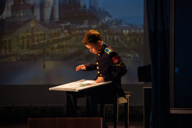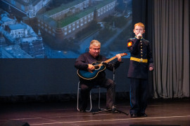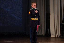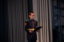 Члены жюри, представители выпускного курса: педагог-организатор учебного курса 11-х классов Романова Оксана Сергеевна и победитель Всероссийских и Международных творческих конкурсов, финалист II Международного детского культурного форума в Москве кадет Галушко Богдан по традиции приготовили для самого талантливого пятиклассника подарки. В этом году специальный подарок получил кадет 5В класса Першин Александр.
