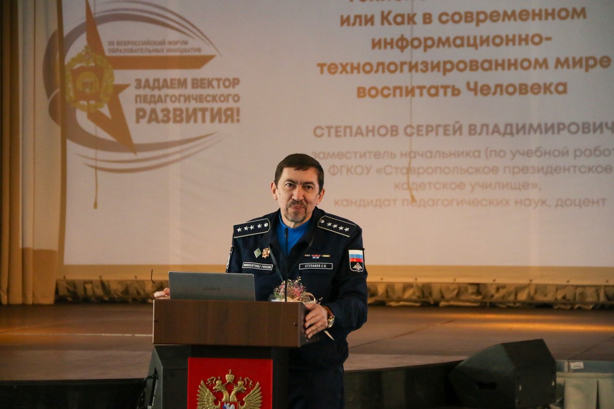 В Ставропольском президентском кадетском училище состоялся VII Всероссийский форум образовательных инициатив «Задаём вектор педагогического развития!». Тема этого года – «Космический вектор образования: наследие прошлого и траектория будущего». Выбор не случаен: 2026 год ознаменован 65-летием полёта Юрия Гагарина. Этот юбилей – не просто дань истории, но и напоминание: именно образование, дерзость мысли и вера в мечту позволили нашей стране открыть человечеству дорогу во Вселенную.