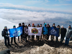 Восхождение проходило под руководством преподавателя математики, педагога дополнительного образования по программе «Клуб туриста» Инги Михайловны Алимовой и преподавателя географии, руководителя Молодёжного клуба Русского географического общества «САРМАТ» Елены Витальевны Щербаковой.