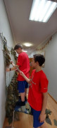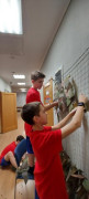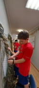 Маскировочные сети сегодня – самый ходовой материал, на них у военных очень большой спрос. Основа и материал для сетей были переданы волонтерской группой «Первая помощь», объединившей неравнодушных людей от Магадана до Москвы, активным участником которой является мама одного из кадет. А вместо станка, на который обычно натягивается основа, приспособили стенку в коридоре.