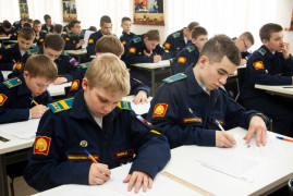 Кадеты уже написали проверочные работы по русскому языку и математике, им предстоит ещё проверить свои знания по таким предметам как биология, география, физика, химия, история, обществознание.