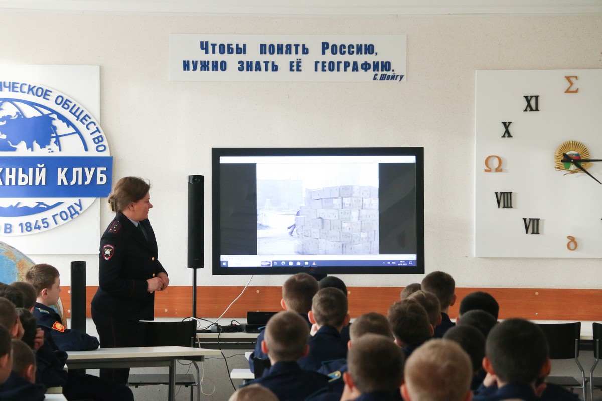 В преддверии осенних каникул сотрудники Госавтоинспекции города Ставрополя провели познавательную лекцию для кадет на тему «Формирование культуры безопасного поведения несовершеннолетних в дорожно-транспортной среде» и «Ситуации «обманчивой» безопасности». Мероприятие было направлено на закрепление знаний правил дорожного движения и повышение бдительности юных пешеходов в период каникул.