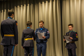 Но пришло время подводить итоги. После небольшого театрального пролога, в котором кадеты и педагоги показали, как проходили мероприятия в рамках «Научной среды» в училище, ко всем с приветственным словом обратился заместитель начальника училища по учебной работе Сергей Владимирович Степанов.