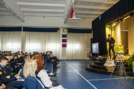 - Наш фестиваль подошёл к своему финалу. Целых полтора месяца преподаватели всех отдельных дисциплин вместе с кадетами придумывали и показывали различные мероприятия для кадет, которые в свою очередь радовали своих педагогов интересными исследовательскими проектами, техническими экспонатами, открывали сами дал себя новое. Мы старались, чтобы всё училище превратилось на эти дни в площадку новых творческих научных достижений кадет и педагогов-наставников. У всех у нас вместе это получилось. Сегодня мы подведем итоги и отметим лучшие проекты.