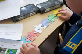 С особым увлечением воспитанники работали в парах: собирали предложения из пазлов, закрепляя грамматическую тему «Порядок слов в СПП».