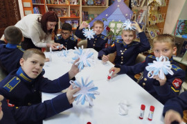 Воспитанники 5 «Д» класса Ставропольского президентского кадетского училища под руководством преподавателя русского языка и литературы Анны Васильевны Подрезовой и воспитателя Натальи Владимировны Касумовой посетили Ставропольскую краевую детскую библиотеку им. А. Е. Екимцева. В День рождения Деда Мороза, когда воздух наполняется волшебством, художественный руководитель школы «Ренессанс» предложила мастер-класс по изготовлению объёмных снежинок в технике квиллинг.