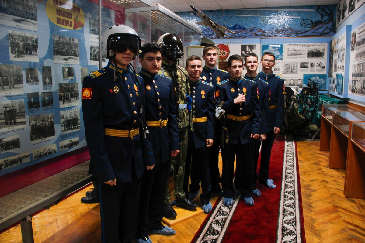 Сразу по прибытии в училище нашим кадетам провели обзорную экскурсию по высшему учебному заведению, показали различные модели самолётов, ставропольские кадеты смогли примерить на себя лётное обмундирование и современные шлемофоны пилотов. Также наших кадет познакомили с музеем училища, ребята побывали и в учебном корпусе, посмотрели аудитории, где проходят теоретические занятия у будущих лётчиков-истребителей.