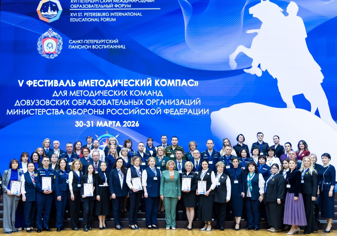 В Санкт-Петербургском Пансионе воспитанниц состоялся V Фестиваль для методических команд довузовских образовательных организаций Министерства обороны РФ «Методический компас». Масштабное событие, собравшее 20 методических команд, проходило в рамках деловой программы XVI Петербургского международного образовательного форума. Тема фестиваля 2026 года: «Система довузовских общеобразовательных организаций Министерства обороны Российской Федерации: педагогика высоких, но достижимых результатов».