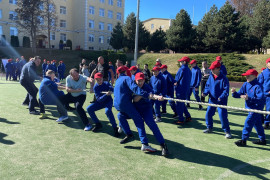 После поздравлений, все участники приняли участие в соревнованиях по перетягиванию каната. Команды были сформированы из четырёх кадет и их отцов, всего в каждой команде было по восемь участников.