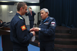Далее по традиции педагог-организатор курса Оксана Сергеевна Романова озвучила результаты по номинациям переходящих вымпелов и статуэток. В 1 четверти вымпелом и статуэткой «За лучшие показатели в учёбе» награждён 10 «А» класс (воспитатели: Ермошина Марина Николаевна, Додокин Алексей Владимирович). «Самым дисциплинированным классом» стал 10 «Д» (воспитатели: Удовиченко Ольга Фёдоровна, Гутенёв Дмитрий Сергеевич). «За успехи в спорте» и «За лучший внутренний порядок» награждён 10 «В» класс (воспитатели: Дворникова Алла Владимировна, Корыпалов Дмитрий Владимирович). Вымпелом и статуэткой «За успехи в творчестве» и «Общественная деятельность» награждён 10 «Г» класс (воспитатели: Ленкова Татьяна Ивановна, Гусейнов Вагиф Фазил Оглы).