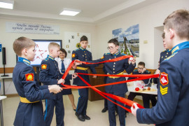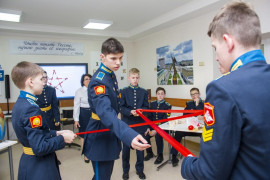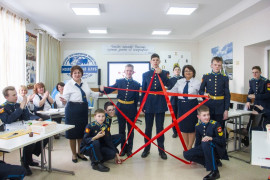 В завершении мероприятия преподаватели предложили кадетам, получившим отличительные знаки, с помощью ленты построить звезду.