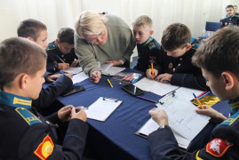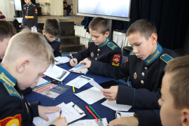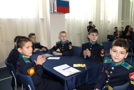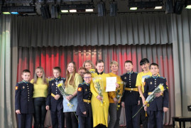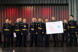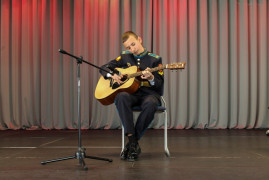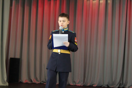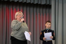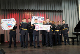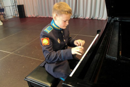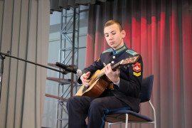 Творческий подарок преподнесли кадеты 6 «Д» класса Кирилл Медведев, исполнив на гитаре композицию «Ворон», и Евстафий Потапов с композицией «В стране гномов» на фортепиано.