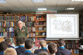На встречу с кадетами пришёл подполковник запаса, участник событий 1979-1989 гг. Юрий Владимирович Митрясов, в настоящее время председатель Совета ветеранов Ленинского района г. Ставрополя. Слушая воспоминания воина-«афганца», награждённого орденом Красной Звезды за военную операцию в Афганистане, кадеты прочувствовали всю тяжесть солдатских будней на войне. Эмоциональный накал вызвал пронзительный отрывок из повести С.Алексиевич «Цинковые мальчики», а также волнующие кадры из фильма Ф. Бондарчука «9 рота» по одноимённой повести Ю. Короткова.