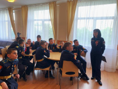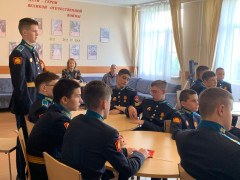 Уже совсем скоро вся страна будет отмечать 80-летие Победы советского народа в Великой Отечественной войне. Поэтому во время классного часа педагог предложила кадетам сыграть в увлекательную интеллектуальную викторину под названием «История Великой Отечественной Войны». Класс, поделившись на 2 команды, приступил к игре. Викторина состояла из 8 категорий по 5 вопросов в каждой. Кадеты показали прекрасные знания по истории Великой Отечественной войны. Они называли какое было тогда оружие, даты главных военных сражений, имена Героев войны.