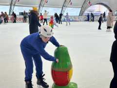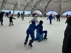 Кто-то хорошо умел кататься, показывал сложные трюки и с лёгкостью скользил по льду, кто-то впервые встал на лед, держался за бортик огромного катка и пытался поймать равновесие, собираясь с силами и мужеством. Используя специальные ходунки, самые смелые, оттолкнувшись от бортика, выезжали на середину. Остальным помогали одноклассники: но уже в конце заезда могли стоять самостоятельно и скользящими движениями катиться вперёд!