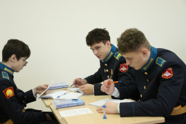 Офицер должен владеть арсеналом стратегий! Поэтому, развитие многовариантного геометрического мышления и умения выбирать оптимальный алгоритм решения задачи – такую цель преследовала, готовя открытый урок, преподаватель ОД (математика, информатика и ИКТ) Наталья Александровна Иванова. В 9 «А» классе прошел необычный урок геометрии. Урок одной задачи. Четыре способа решить одну и ту же геометрическую задачу продемонстрировали кадеты на уроке. От воспитанников потребовалось проявить большой арсенал знаний. Каждое решение необходимо было обосновать и защитить.