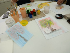 Педагоги погрузились в творческий, увлекательный процесс с его ручной работой, яркими красками и простыми формами, который оказывал на педагогов медитативный эффект, помогая снять стресс, тревогу и эмоциональное напряжение, а также помог отвлечься от повседневных проблем и забот, погрузившись в творчество.