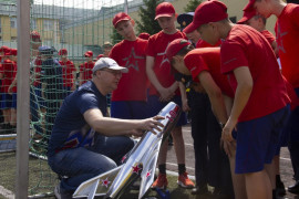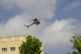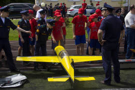 Краевая федерация авиагонок представила около полусотни моделей радиоуправляемых летательных аппаратов, среди которых различные модели планеров, самолётов, вертолётов, квадрокоптеров. Сначала состоялась выставка моделей, а затем самая интересная и красочная часть программы – демонстрационные полёты. «Бочка», «Боевой разворот», «Штопор» – эти и многие другие виражи в воздухе выполняли спортсмены, управляя своими моделями летательных аппаратов. Каждый полёт сопровождался комментариями инструктора, который объяснял, какую именно фигуру выполнил спортсмен, каков вес модели и её технические характеристики, и многое другое. Демонстрация полётов радиоуправляемых авиамоделей в знак признательности была встречена бурными аплодисментами воспитанников СПКУ.