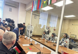 У Марины Василевской – космонавта из Белоруссии – ответственная миссия. Она – первый космонавт в новейшей истории республики, потому её провожающие взяли с собой белорусские флаги.