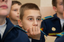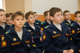 Кадеты познакомились с творчеством Ольги Берггольц. Голос Ольги Берггольц назвали символом Победы, а поэтессу – «блокадной Мадонной» и музой осажденного города. Под звук метронома ребята почтили память погибших минутой молчания. Воспитанники познакомились с удивительными фотоколлажами Сергея Ларенкова из серии «Невидимый Ленинград». На каждом снимке с точностью до миллиметра совмещены кадры одного и того же места, но сделанные в разное время: в годы блокады Ленинграда - и в начале двадцать первого века. Эффект от этих снимков потрясающий. Глядя на них, словно вживую ощущаешь, как неспокойно под этим нависшим небом; и непонятно, что на этом месте делает уже другой город.