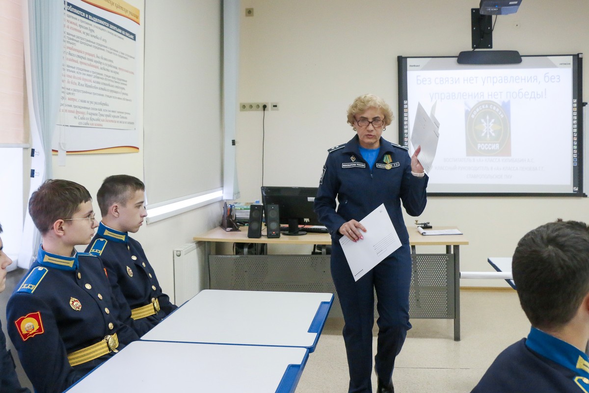 «Без связи нет управления, без управления нет победы!» Именно с этих слов начался «классный час». Кадеты во время занятия узнали об истории развития связи, о том, что первый электромагнитный телеграф создал российский учёный Павел Львович Шиллинг в 1832 году, познакомились с азбукой Морзе. Ребята разгадывали шифры, на азбуке Морзе переводил послания, проводили опыты, выясняя как же действуют волны связи. А кроме того, воспитатели рассказали кадетам в каких военных вузах в стране учат на связистов.