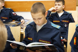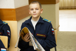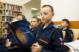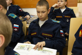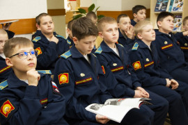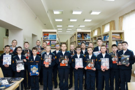 Кадеты 5 «В» класса совершили в библиотеке СПКУ медиапутешествие «Первопроходцы космоса».