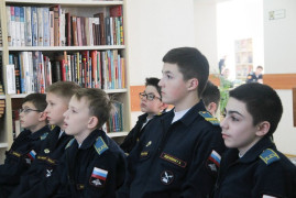 900 дней и ночей находился Ленинград в осаде. Выстоял Ленинград. Город-герой. Город-фронт. Кадеты 6 «Б», 6 «В» и 6 «Г» классов в течение Недели памяти посещали библиотечные мероприятия, посвящённые 80-летию снятия блокады Ленинграда. 25, 27 и 29 января для воспитанников проводился Час исторической справки «Бессмертие подвига».