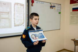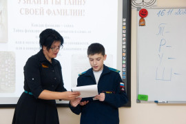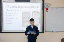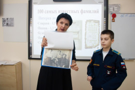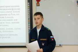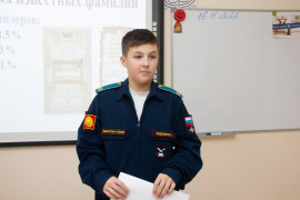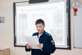 Все кадеты 5-х классов добросовестно выполнили домашнее задание по исследованию истории своей фамилии и с увлечением и гордостью рассказали своим одноклассникам о результатах своего труда и о своей фамилии.