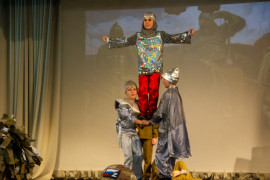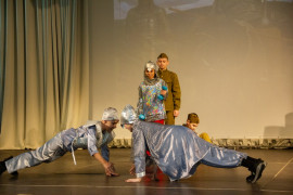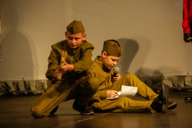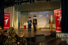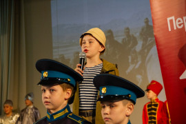 Открылось торжественное мероприятие небольшим театральным представлением, которое подготовили юные актёры. О Защитниках нашего Отечества в разное историческое время поведали в своем выступлении кадеты 5 Е класса.