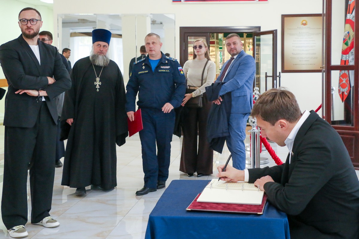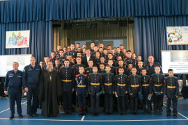 Во время визита Сергей Александрович пообщался с ребятами, с огромным удовольствием оставил свои автографы на шахматной доске, фотографиях, памятных вещах кадет, оставил добрые пожелания в Книге почётных гостей СПКУ. Но самым долгожданным событием был, конечно, сеанс одновременной игры. В училище очень много кадет, которые увлекаются шахматами, есть программа дополнительного образования «Шахматы» (руководитель – педагог ДО Пётр Николаевич Кучеров).