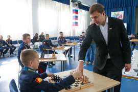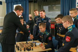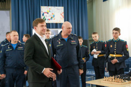 Чемпион мира по шахматам, гроссмейстер, член Совета Федерации от Республики Крым Сергей Александрович Карякин побывал в гостях у воспитанников Ставропольского президентского кадетского училища. Чемпиону провели экскурсию по училищу, он пообщался с воспитанниками и провел сеанс одновременной игры. Сергей Александрович Карякин в 12 лет стал самым молодым гроссмейстером в истории, был внесён в Книгу рекордов Гиннесса. Встреча с ним произвела на кадет самые яркие впечатления. Сыграть в шахматы с чемпионом мира – мечта любого, кто хоть немного увлекается этой интеллектуальной игрой.