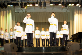 Концертная программа началась с выступления хора 1 учебного курса. Затем старинной французской песенкой заиграл рояль, после чего кадеты 5 «Е» прочли стихотворение.