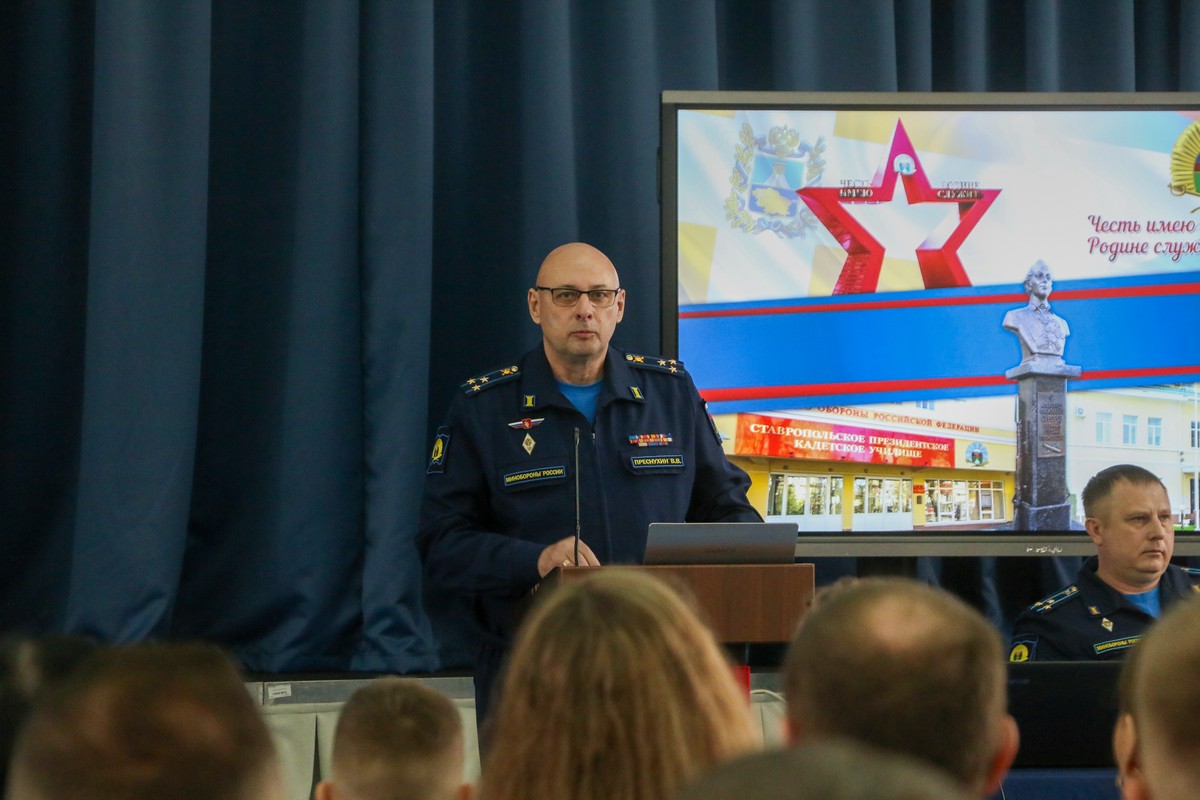Во время встречи руководство училища рассказало присутствующим о правилах приёма и жизни воспитанников. Открыл встречу начальник Ставропольского ПКУ, кандидат технических наук, профессор Вячеслав Валерьевич Преснухин.